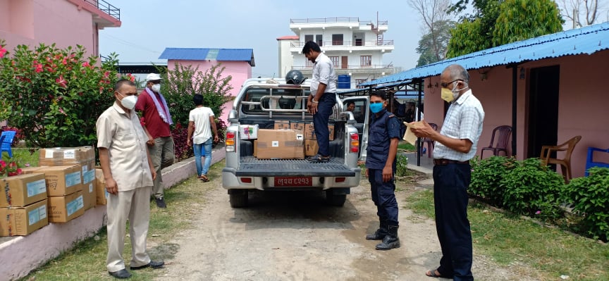 जिल्लाका क्वारेन्टाइनमा बस्नेको संख्या बढ्दै गइरहेको र अत्यावश्यक स्वास्थ्य सामग्रीको अभाव भइरहदा आवश्यक सहयोगका लागि विभिन्न निकायबाट सहयोगका लागि पहल भइरहेको छ । सोही क्रममा शनिबार कपिलवस्तुमा २ पालिकालाई अत्यावश्यक स्वास्थ्य सामग्री हस्तान्तरण भएकोे छ ।