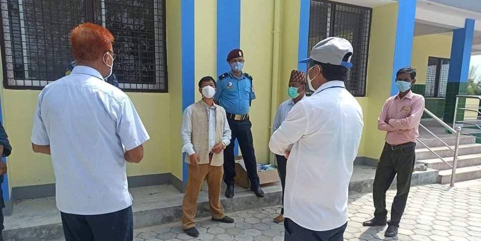 स्वास्थ्य कार्यालय कपिलवस्तुका प्रमुख, डब्लु.एच.ओका प्रतिनिधि, सहितको टोलीले जिल्लाको विभिन्न पालिकाको आइसोलेशन सेन्टर अनुगमनको क्रममा विजयनगरमा आएको थियो ।