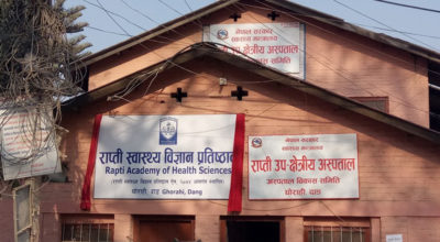घोराही । दाङस्थित राप्ती स्वास्थ्य विज्ञान प्रतिष्ठानमा कोरोना संक्रमित व्यक्तिहरुको उपचार सुरु हुने भएपछि बहिरंग