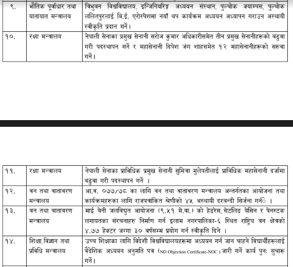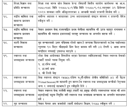 यस्ता छन् मन्त्रिपरिषदले गरेका २२ निर्णय