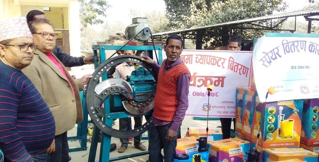 कपिलवस्तु नगरपालिकाले किसानहरुलाई ईलेक्ट्रिक चापकटर र स्प्रे टंकी उपलब्ध गराएको छ । तौलिहवास्थित नगरपालिकाको हाता भित्र ८३ वटा स्प्रे टंकी र १३ वटा चापकटर मेशिन उपलब्ध गराएको हो ।