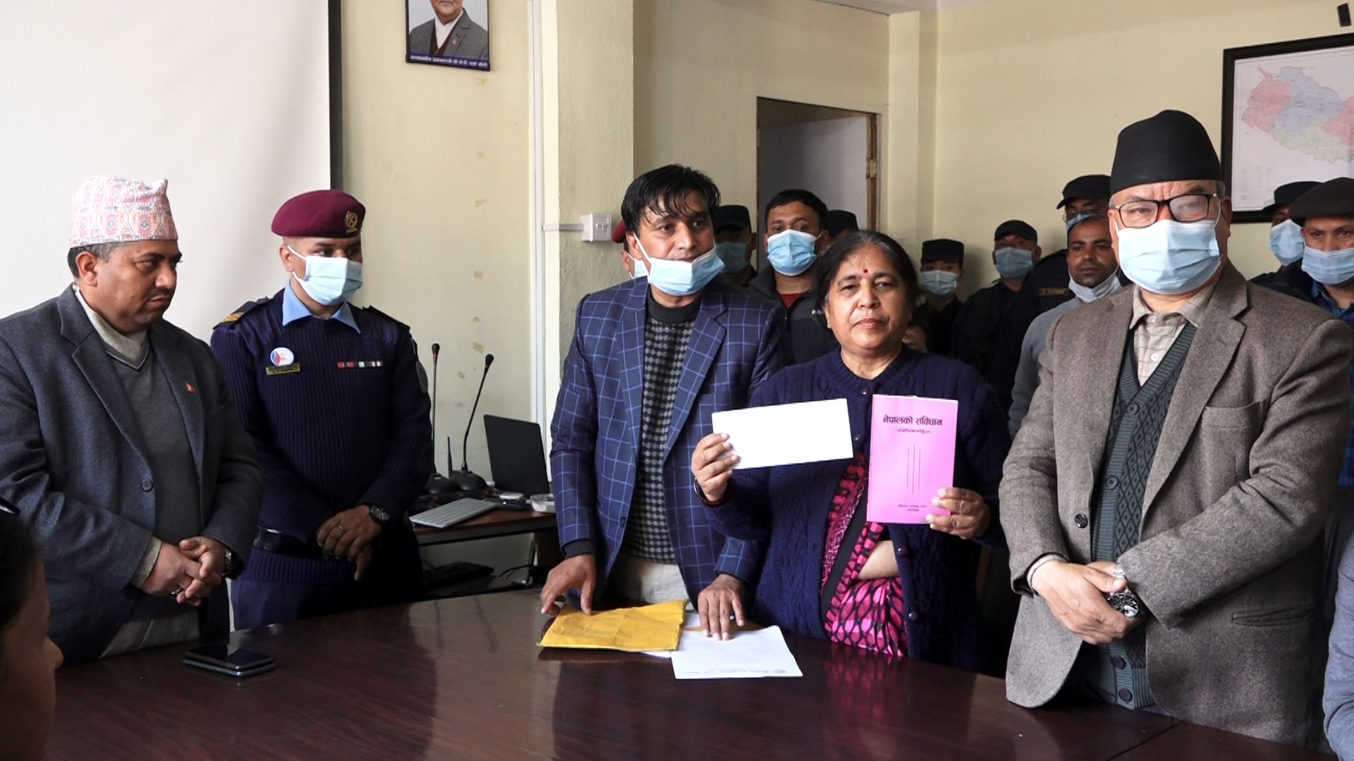 काठमाण्डौ जिल्ला प्रशासन कार्यालयमा जुलुससहित पुगेको काठमाण्डौ जिल्ला कमिटीले प्रधानमन्त्री ओलीलाई संविधानको पुस्तकसहित विरोधपत्र पठाएको छ । नेकपा काठमाण्डौ जिल्ला कमिटीका इञ्चार्ज सावित्रा भुसालले केन्द्रीय सङ्घर्ष समितिको आयोजनामा प्रधानमन्त्री ओलीलाई विरोधपत्र र नेपालको संविधान बुझाइएको बताउनुभयो । संविधानको पुस्तक पठाउन नेताहरू प्रतिनिधि सभा विघटनको असंवैधानिक कदमका विरुद्धमा सङ्घर्ष गरौँ लेखिएको ब्यानरसहित काठमाण्डौ जिल्ला प्रशासन कार्यालय बबरमहल पुगेका थिए ।