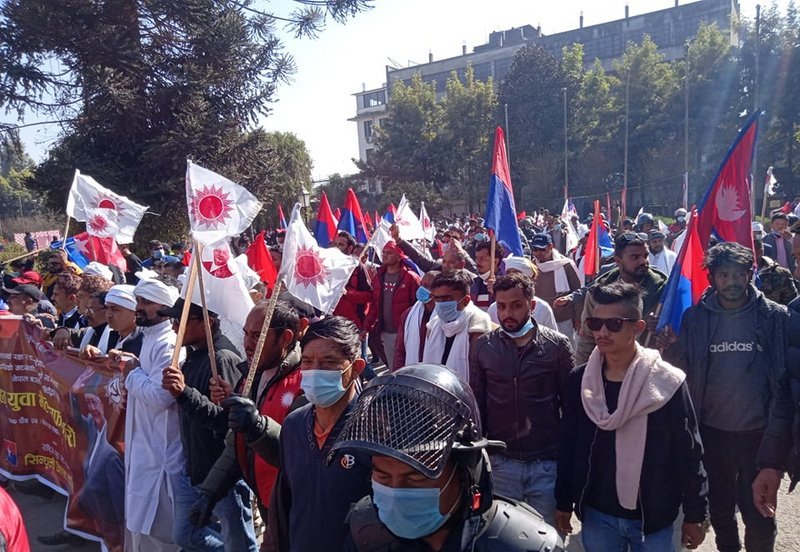 ओलीको निर्देशनमा प्रदेश २ का युवाहरु काठमाडौंमा ल्याएर माइतीघर मण्डलादेखि रत्नपार्कसम्म धोती जुलुस प्रदर्शन गरेका थिए। उपत्यकाका विभिन्न स्थानहरूबाट निस्केका सबै र्याली नेपाल प्रज्ञा प्रतिष्ठान कमलादीमा पुगेर सभामा परिणत हुने जनाइएको छ। भेलालाई प्रधानमन्त्री केपी शर्मा ओलीले सम्बोधन गर्ने कार्यक्रम छ।