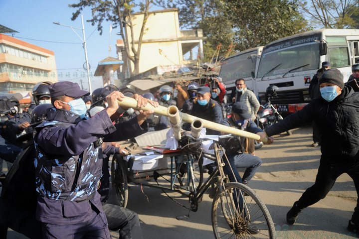 ललितपुरको पाटनमा प्रहरीले बयलगाडा खोस्न खोजेपछि केहीबेर तनाव भएको थियो । प्रधानमन्त्री ओलीले असंवैधानिक तरिकाबाट प्रतिनिधि सभा विघटन गरेको भन्दै उक्त कदम सच्याउन प्रचण्ड-नेपाल समूहको अनेरास्ववियूले माग गरिरहेको छ ।