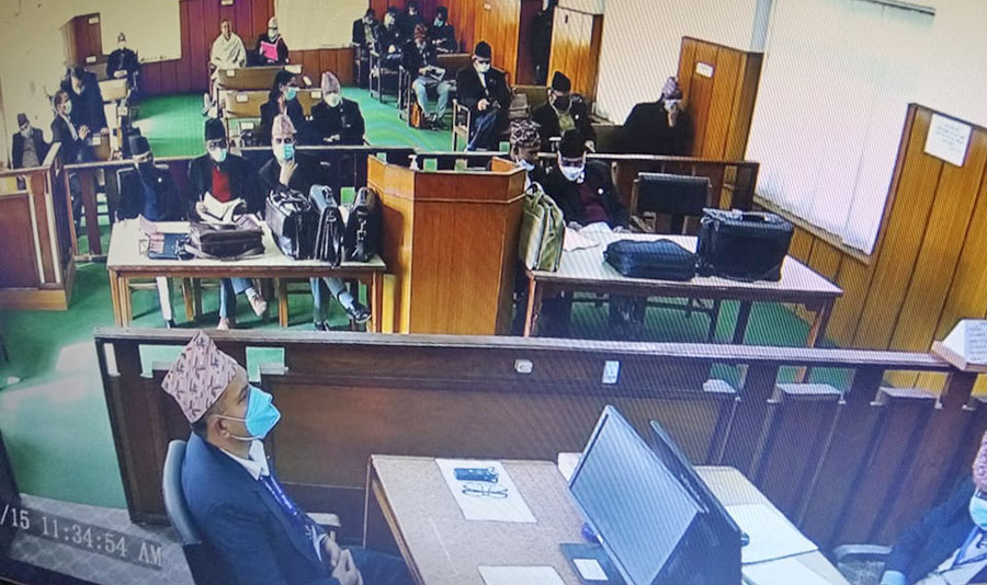 संवैधानिक इजलासमा संसद् विघटनविरुद्धको रिटमाथिको बहसपछि इजलासले बृहत् पूर्ण इजलास गठनको माग अस्वीकार गरेको छ ।