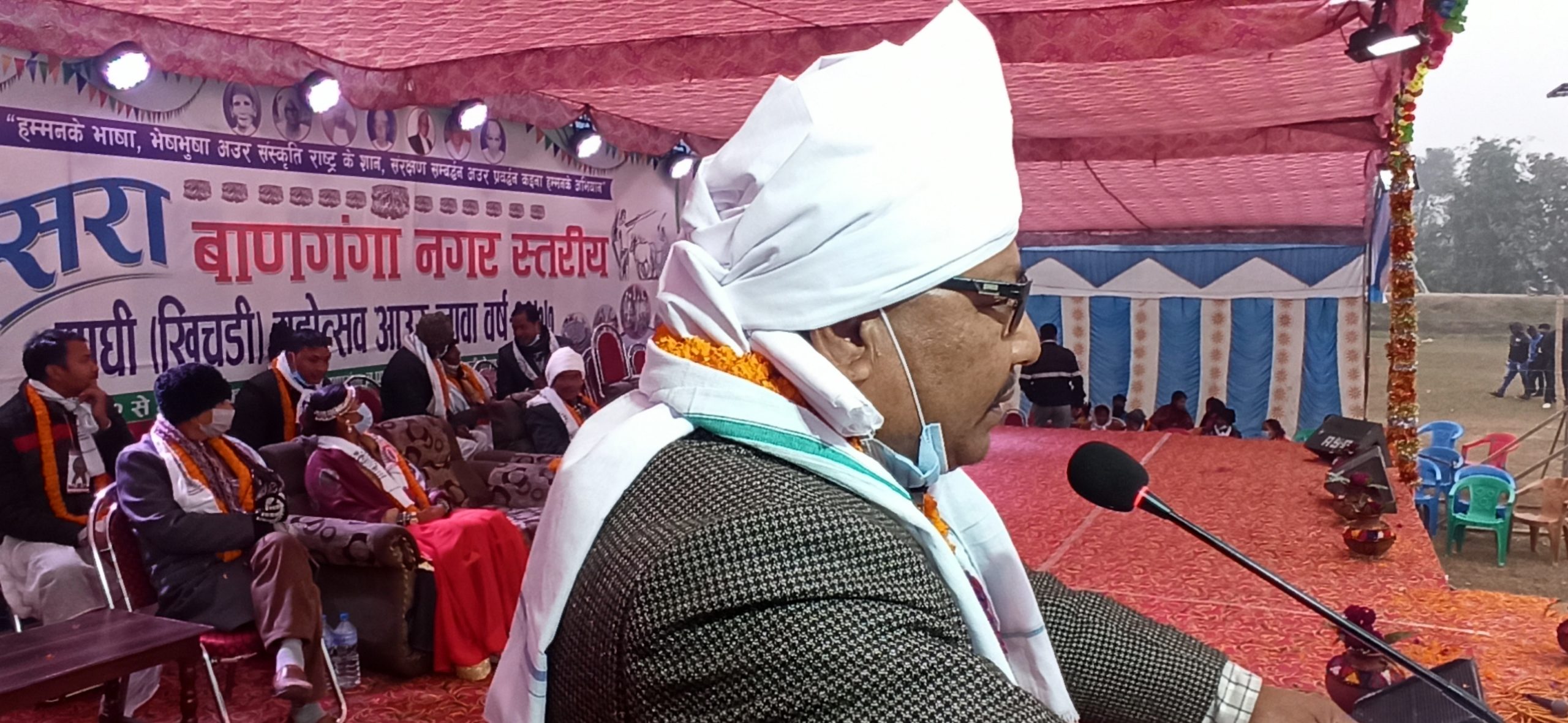 थारु कल्याणकारिणी सभा बाणगंगा नगर कमिटिको आयोजना तथा नगरपालिकाको सहकार्यमा शुक्रबारबाट वडा नम्बर ११ हथौसामा सुरु भएको तेश्रो नगरस्तरीय माघी तथा खिचडी महोत्सवमा प्रमुख अतिथि मन्त्व सुनाउँदै उहाँले शिक्षा आर्जन गर्न थारु समुदाय कम्मर कसेर आफै लाग्नु पर्ने बताउनु भयो ।