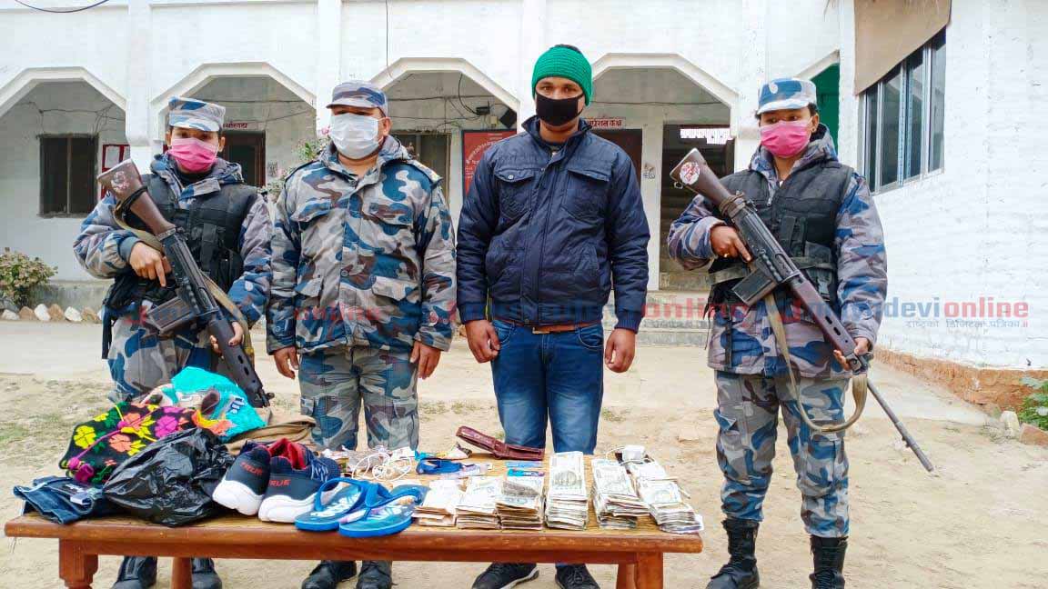 अवैध भारतीय रकमसहित कृष्णनगरबाट एक जना पक्राउ परेका छन् । शसस्त्र प्रहरी बल नेपाल बर्डर आउट पोष्ट कृष्णनगरले भारतबाट अबैध रुपमा भित्राईएको पाँच लाख चौतिस हजार पाच सय पचहत्तर भारतीय रुपैया बरामद गरेको छ ।