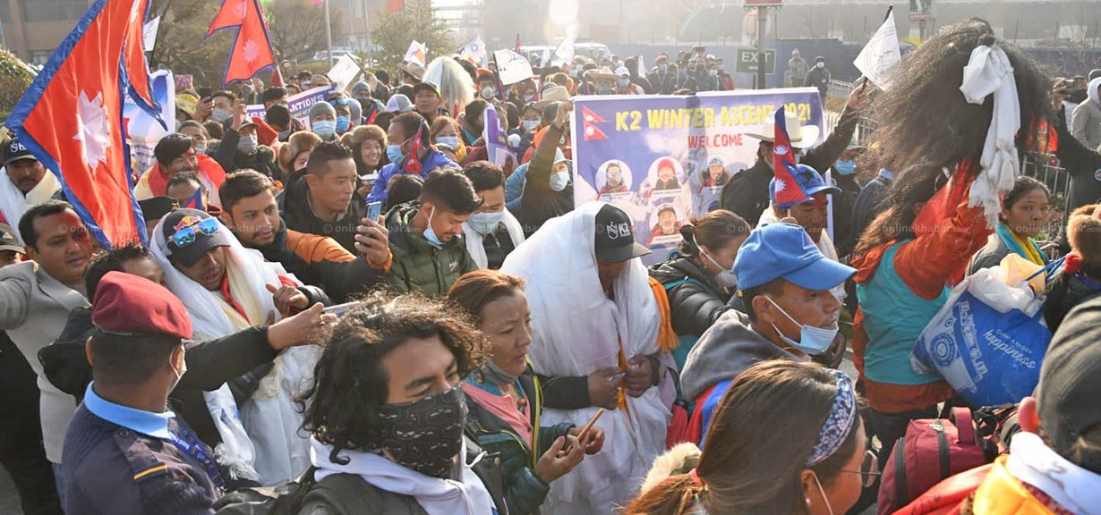 हिउँदयाममा विश्वको दोस्रो अग्लो हिमाल माउन्ट केटु आरोहण गरेर विश्व कीर्तिमान कायम गरेका नेपाली आरोहीहरु काठमाडौं फर्किएका छन् ।