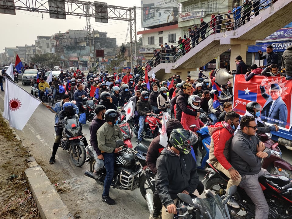 ताजा जनादेशका लागि घोषित मध्यावधि निर्वाचनको समर्थनमा नेकपा ओली पक्षको राष्ट्रिय युवा संघ नेपाल लुम्बिनीले बुटवलमा प्रदर्शन गरेको छ।