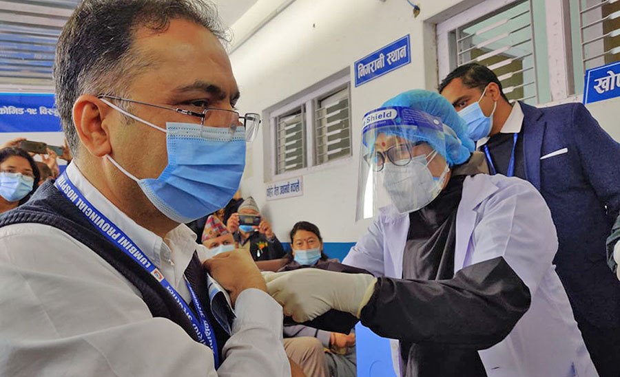 मुख्यमन्त्री शंकर पोखरेलले स्वास्थ्यकर्मीलाई खोपको भाइल दिएर अभियान शुरु गरेका हुन् ।