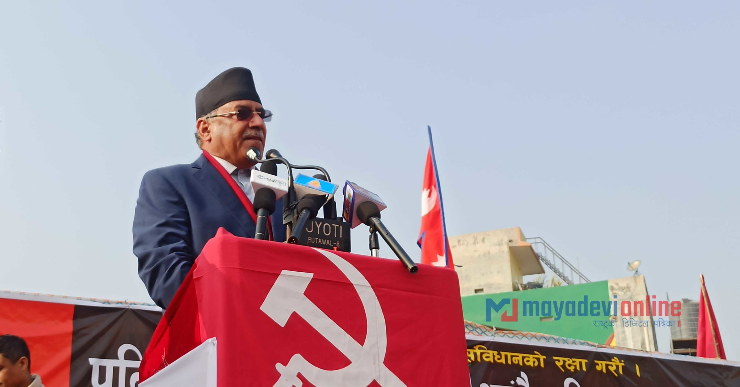शनिबार कैलालीको धनगढीमा आयोजित विरोध सभालाई सम्बोधन गर्दै प्रचण्डले संसद् बैठक बसेर केपी ओलीलाई कारबाही गर्ने तागत आफूहरुसँग रहेको बताएका हुन् । आफूपक्षीयसहित काँग्रेस र जसपाका गरीदुई तिहाइ सांसद ओलीको प्रतिगमनको विपक्षमा रहेको भन्दै प्रचण्डले ओलीको सनकको भरमा प्रतिनिधिसभा विघटन हुन नसक्ने बताए ।