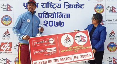 काठमाण्डौ । प्रधानमन्त्री कप क्रिकेटमा लुम्बिनीले सुदूरपश्चिमलाई ६ विकेटले हराएको छ ।मुलपानीमा सुदूरपश्चिमले दिएको ६३
