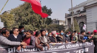 काठमाडौँ ।संसद विघटनविरुद्ध नेकपा प्रचण्ड–नेपाल खेमाले शुक्रबार काठमाडौँमा फेरि विशाल प्रदर्शन गरेको छ। अनेरास्ववियूसहित त्रिचन्द्र