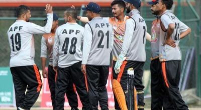 काठमाडौँ ।विभागीय टोली सशस्त्र प्रहरी बलको एपीएफ क्लबले प्रधानमन्त्री कप पुरुष राष्ट्रिय क्रिकेट प्रतियोगितामा लगातार