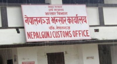 काठमाडौं ।बाँकेको नेपालगञ्ज भन्सार कार्यालयले छ महिनामा लक्ष्यभन्दा दुई अर्ब ३२ करोड रुपैयाँ बढी राजस्व