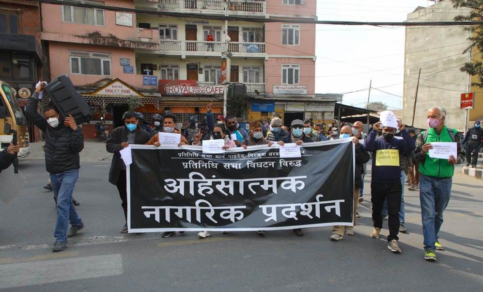 संसद भंग गरेको विरोधमा काठमाडौँमा अहिंसात्मक प्रदर्शन