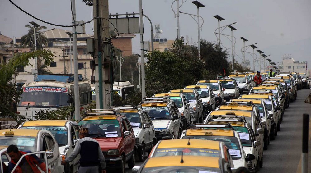 माघ २२ गते नेकपाको प्रचण्ड–नेपाल पक्षले आह्वान गरेको आमहड्तालका क्रममा अज्ञात समूहबाट ट्याक्सी जलाइएपछि त्यसको विरोधमा चालकहरु आन्दोलित भएका छन् । शनिबार राजधानीका माइतीघर क्षेत्रमा ट्याक्सीसहित प्रदर्शनमा उत्रिएका चालकहरुले पेशागत सुरक्षाको माग गर्दै दोषीमाथि कारबाही गर्न सम्बन्धित निकायको ध्यानाकर्षण समेत गराएका छन् ।