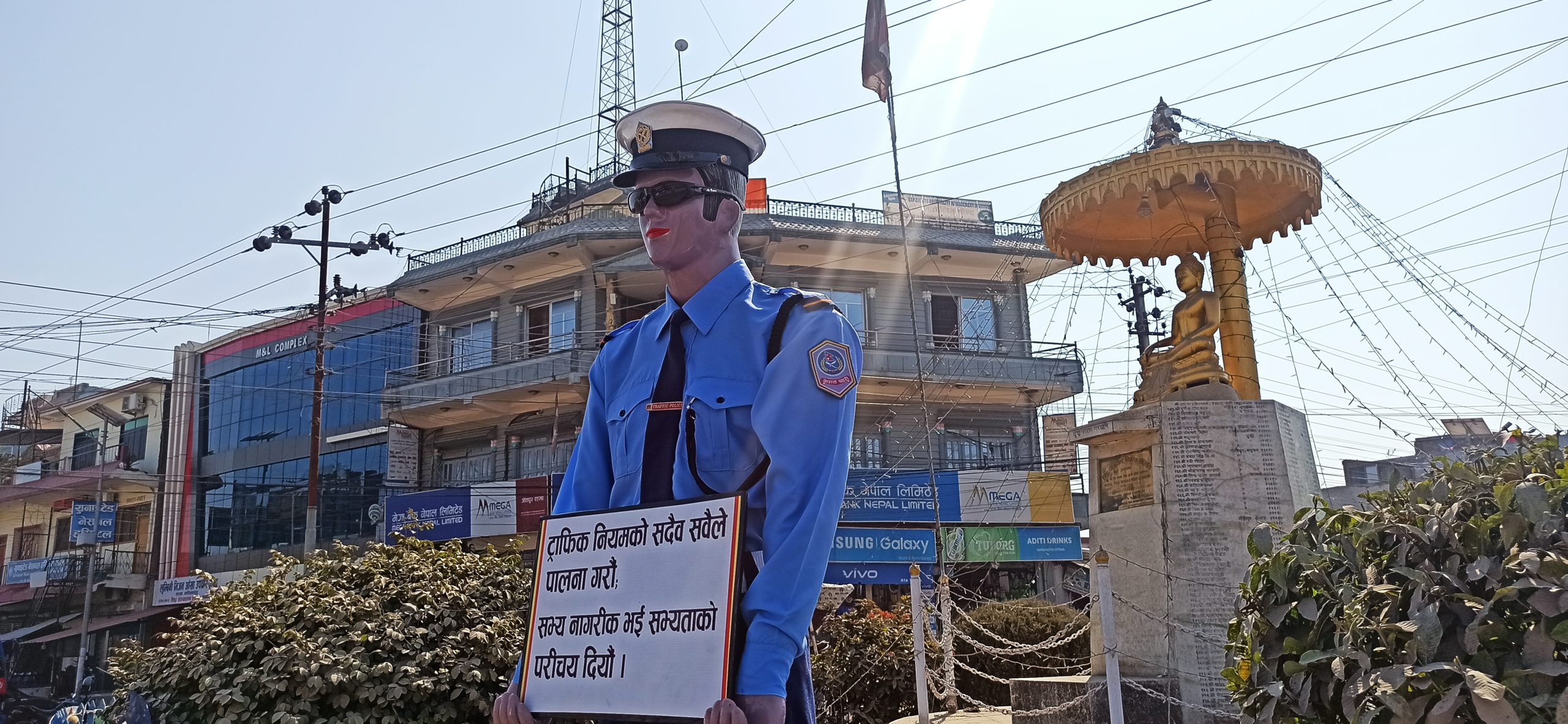 । लुम्बिनी प्रदेश प्रहरीले प्रदेशका बिभिन्न दुर्घटनाको सम्भावना भएका ठाउँमा ‘डमी’ प्रहरी राख्ने गरेको छ ।