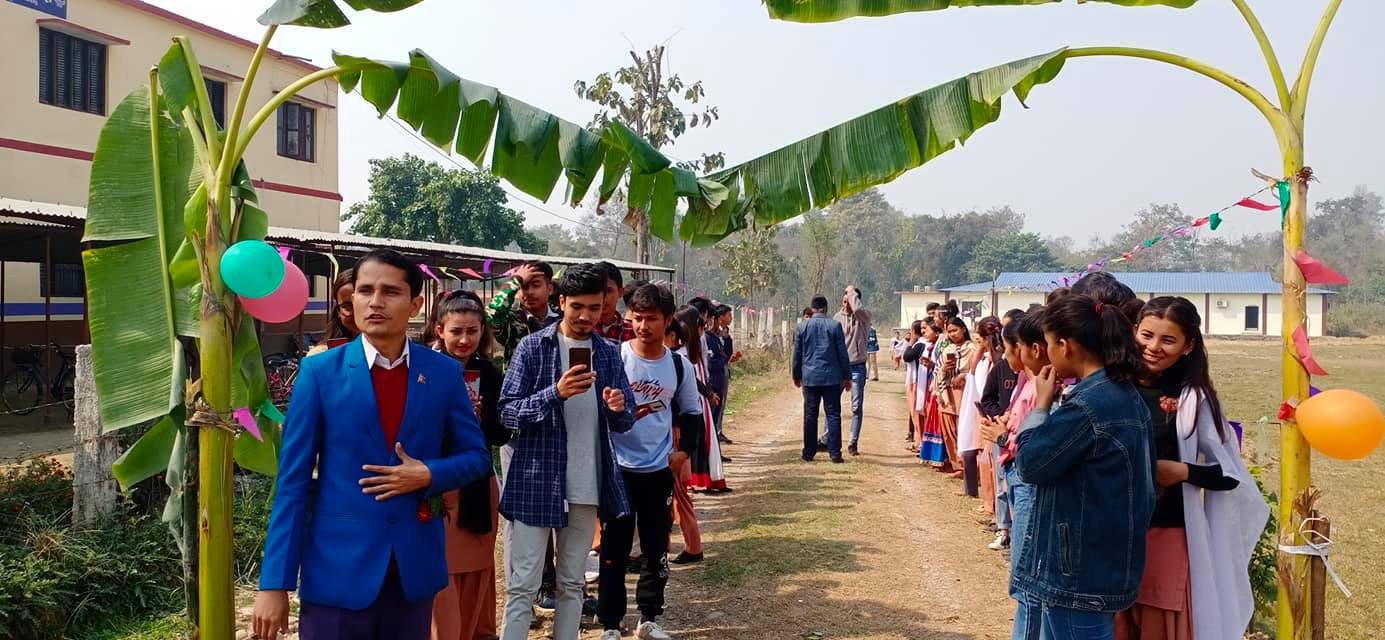 सिद्धार्थ क्याम्पसमा वाणगंगा बुङचीमा कक्षा ११ का नव आगन्तुक विद्यार्थीलाई स्वागत गरिएको छ । सिद्धार्थ क्याम्पस स्ववियु र कक्षा १२ का विद्यार्थीले कक्षा ११ का विद्याथीलाई एक कार्यक्रमकाबीच स्वागत गरेका हुन् । कार्यक्रममा बोल्दै प्लस टु ब्यवस्थापन समिती अध्यक्ष रवि बहादुर काफ्लेले अब बैशाखदेखी क्याम्पसमा बस संचालनको तयारी गरीएको भन्दै विद्यार्थीलाई सहज हुने बताउनुभयो । क्याम्पसले विद्यार्थीको हकहितको लागि काम गर्ने भन्दै राम्रो संग अध्ययन गर्न सम्पूर्ण विद्यार्थीलाई आग्रह गर्नुभयो । यस्तै विशिष्ट अतिथी क्याम्पस प्रमुख खेमराज शर्मा, सहायक क्याम्पस प्रमुख गोबिन्द खनाल, विद्यार्थी नेता सुशिल खत्री, प्लस टु संयोजक राजकुमार अर्याल, विद्यार्थी नेता पुस्कर भुषाल, युवा नेता किरण खड्का लगाएतले बोल्दै नेपालकै उत्कृष्ट क्यूएए मान्यता प्राप्त सिद्धार्थ क्याम्पसमा अध्यननका लागि आउने विद्यार्थीलाई स्वागत गर्दै सिद्धार्थको गरिमालाई उचो राख्नेगरी अध्यनन गर्न सुझाव दिनुभयो । साथै विद्यार्थीको लागि हरेक क्षेबाट सहयोग गर्ने पनि बताउनुभएको छ । विद्यार्थीलाई पर्ने हरेक समस्या समाधानका लागि स्ववियु साथमा रहेको सभापति सुशिल खत्रीले बताउनुभएको छ । कार्यक्रम पुस्कर शर्माको अध्यक्षता र रश्मी श्रेष्ठको संचालनमा सम्पन्न भएको हो । कार्यक्रममा लोक तथा दोहोरी गायक विमल गैरे लगाएतको प्रस्तुती रहेको थियो ।