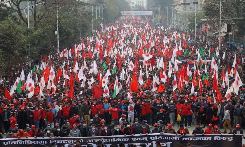 प्रतिनिधि सभा विघटनको विरोधमा नेकपा प्रचण्ड–माधव पक्षले आयोजना गरेको बृहत विरोध प्रदर्शन र सभाअघि काठमाडौ उपत्यकाका विभिन्न ५ स्थानबाट जुलुस निकालेको छ ।
