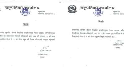 काठमाण्डौ । प्रदेश २ को प्रदेश प्रमुखमा राजेश झा नियुक्त हुनुभएको छ । मन्त्रिपरिषद्को सिफारिसमा