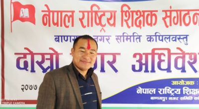 मायादेवी अनलाइन, चारनम्बर ।नेपाल राष्ट्रिय शिक्षक संगठन वाणगंगा नगर समितिको दोश्रो अधिवेशनले धन बहादुर गाहालाई