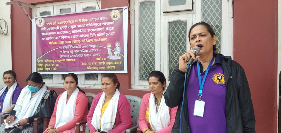 अन्तराष्ट्रिय नारी दिवसको अवसरमा मेची महाकाली बुहारी संयुक्त आवाजले विपन्न महिलाको निशुल्क पाठेघर तथा स्मेयर परिक्षण गरेको छ । १११ औ अन्तराष्ट्रिय नारी दिवसको अवसरमा कपिलवस्तु सामुदायिक अस्पतालको संयुक्त सहकार्यमा अति विपन्न परिवारका महिलाको निशुल्क पाठेघर तथा स्मेयर परिक्षण गरिएको संयुक्त आवाजकी जिल्ला सहसंयोजक देवकला सुबेदी (कमाल) ले जानकारी दिनुभयो ।