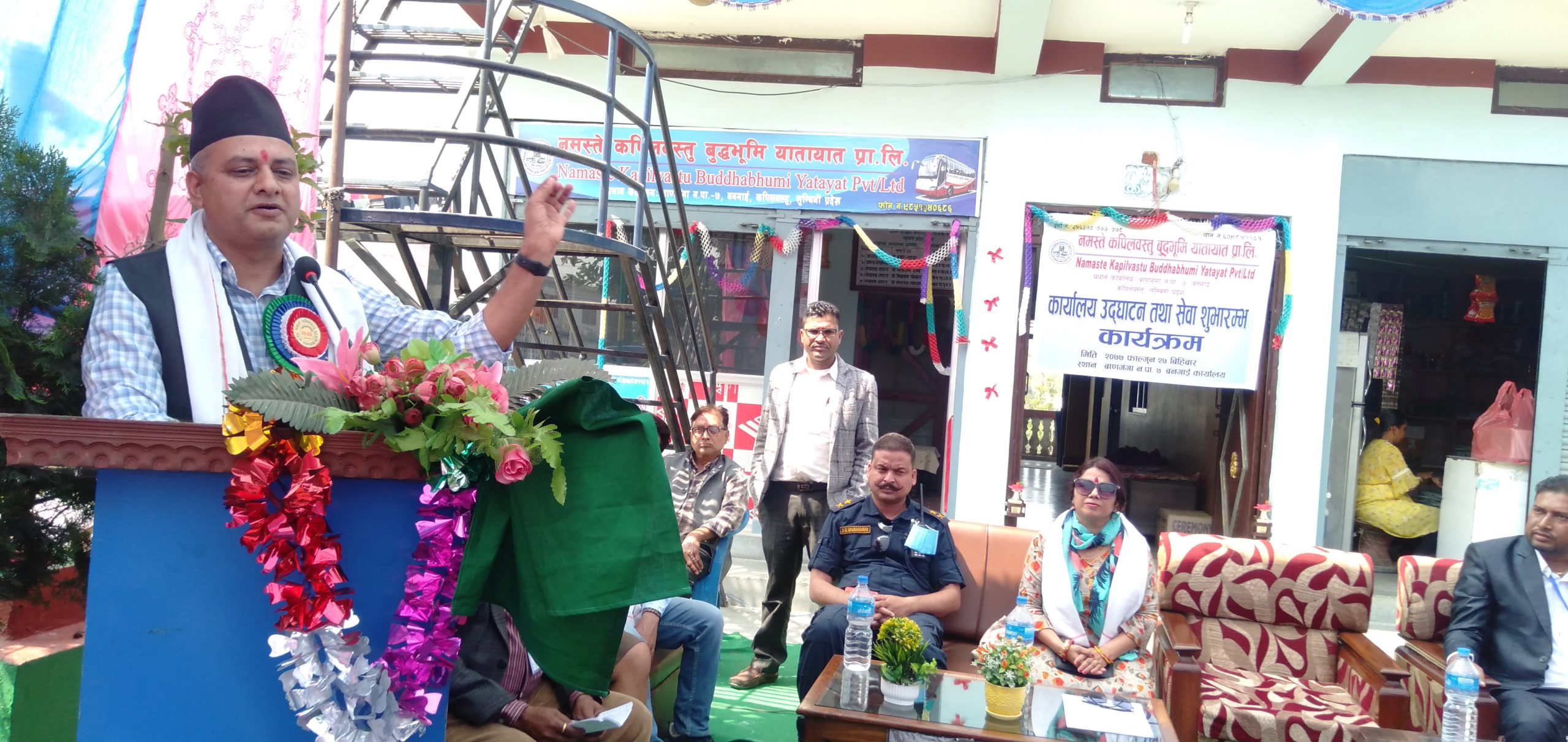 जिल्ला प्रशासन कार्यालय कपिलवस्तुका प्रमुख जिल्ला अधिकारी चक्रपाणी पाण्डेले नमस्ते कपिलवस्तु बुद्धभूमि यातायात प्रालिको कार्यालय उद्घाटन गर्नु भएको छ । बाणगंगा नगरपालिका वडा नम्बर ७ कोइली वनगाईमा रिबन काटेर प्रालिको उद्घाटन गर्नुभएको थियो ।