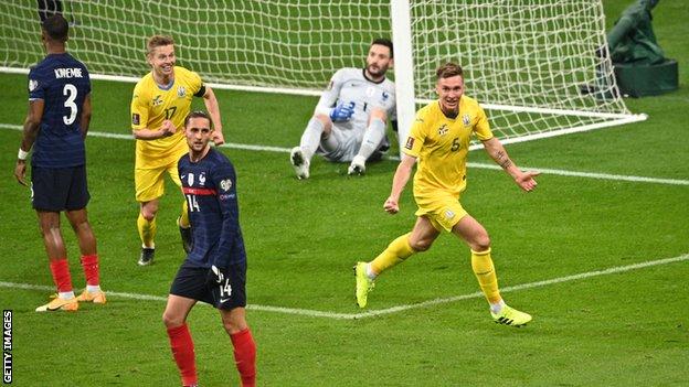 तर ५७ औँ मिनेटमा फ्रान्सका प्रेसनल किम्पेम्बेले आत्मघाती गोल गरेपछि युक्रेन बराबरीको अवस्थामा आयो । त्यसपछि थप गोल हुन सकेन र फ्रान्स बराबरीमै रोकियो ।