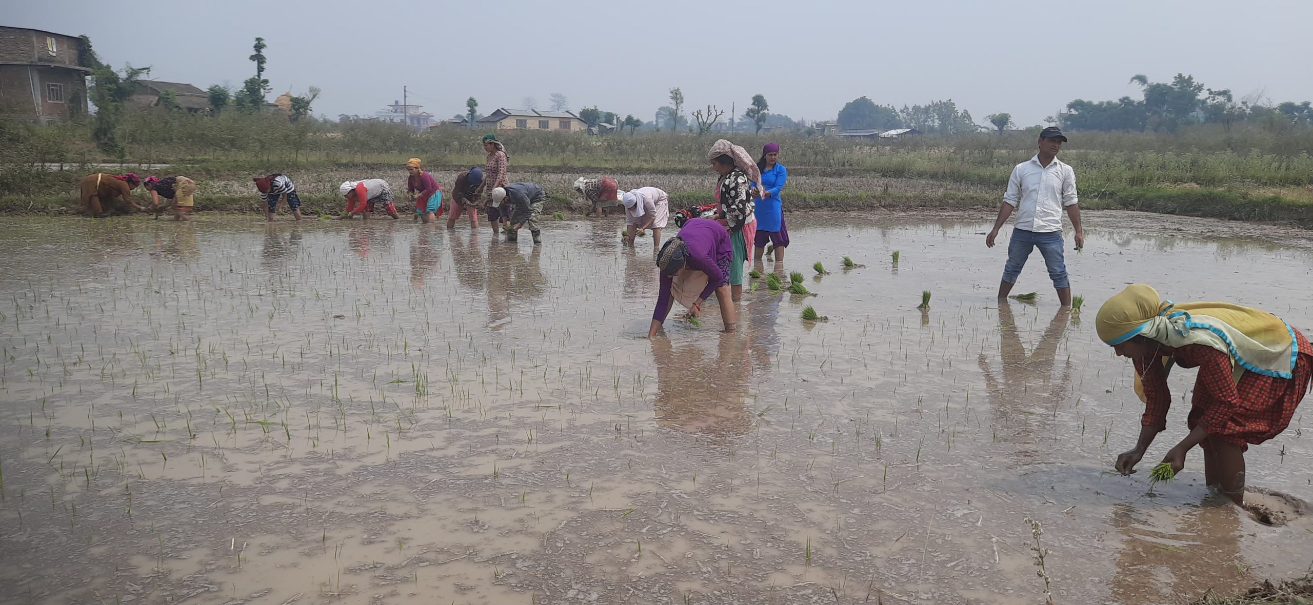 वाणगंगाको हरिहरपुरमा रोपियो चैते धान