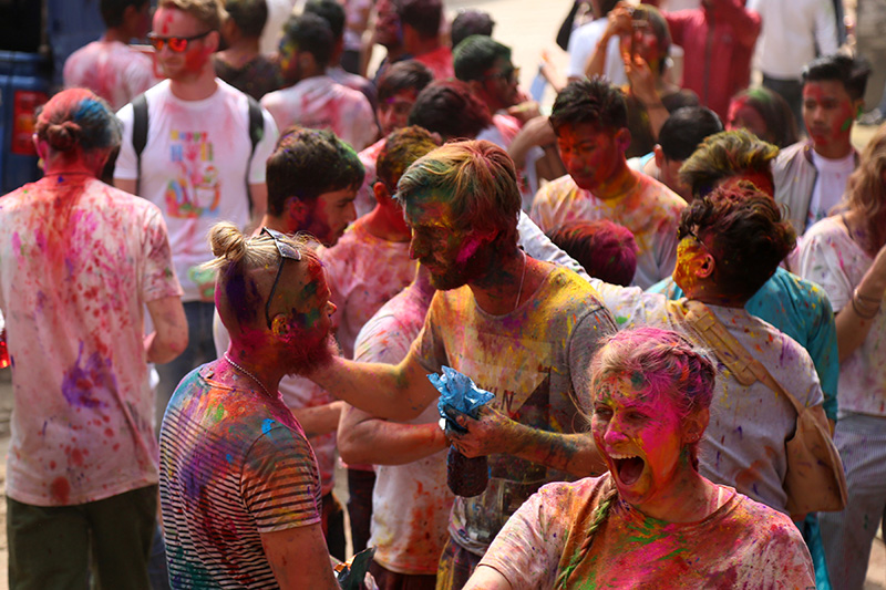 काठमाडौंमा बसोबास गर्ने तराई क्षेत्रका बासिन्दाले पनि आपसमा रंग र अबीर लगाएर होली पर्व मनाउँदैछन् ।