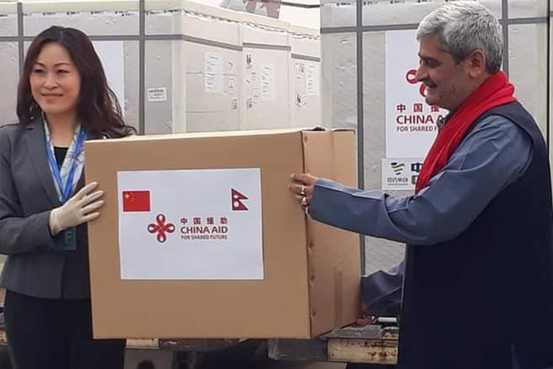 चीन सरकारले दिएको कारोना भाइरसविरुद्धको खोपलगायतका सहायता सामग्री आज नेपाल आइपुगेको छ। सहायता समाग्री लिन चिन गएको नेपाल एयरलाइन्सको विमान आज बिहान ८ बजेर ४२ मिनेट त्रिभुवन अन्तराष्ट्रिय विमानस्थलमा अवतरण गरेको त्रिभुवन विमानस्थल कार्यालयले जनाएको छ। खोप चिनियाँ राजदूत होउ यान्छीले स्वास्थ्यमन्त्री ह्दयश त्रिपाठीलाई हस्तान्तरण गरिन्। विमान हिजो बेलुकी खोप लिन बेइजिङ गएको थियो।