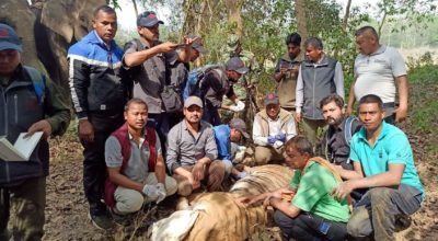 काठमाडौं ।बाँके राष्ट्रिय निकुञ्जले खोरमा थुनेर राखेको पाटेबाघ भागेपछि उच्च सतर्कता अपनाएको छ । नरभक्षी