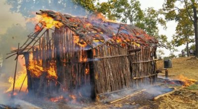 पाल्पा ।राष्ट्रिय वन अतिक्रमण गरी तिनाउ गाउँपालिका–१ कचल सानीउदाङमा बनाइएको टहरामा शनिबार आगो लगाइएको छ