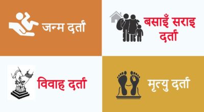 मायादेवी अनलाइन, चारनम्बर । जन्मदर्ताका लागिः– १ बाबु आमाको नेपालि नागरिकताको प्रतिलिपि, बाबु वा आमा