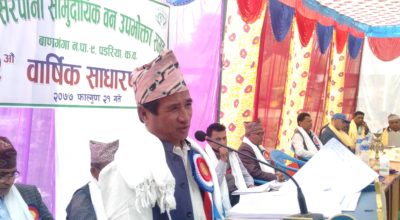 बाबुराम रायमाझी, भलवाड ।रुख रोपौं, बन जोगाऔं भन्ने मुल नाराका साथ सरेपानी सामुदायिक बन उपभोक्ता