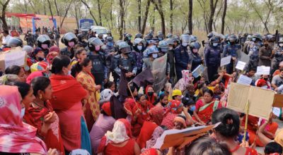 काठमाडौँ ।म्यानमारमा सैन्य सरकारले गरिरहेको हिंसात्मक दमनको विरोधमा शुक्रबार काठमाडौंस्थित म्यानमार दूतावासअगाडि विरोध प्रदर्शन गरिएको