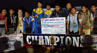 मायादेवी अनलाइन, चारनम्बर । प्रथम सूर्योदय खुल्ला फुटवल प्रतियोगिता’ को उपाधि भैरव एफसी नवलपरासीले जितेको