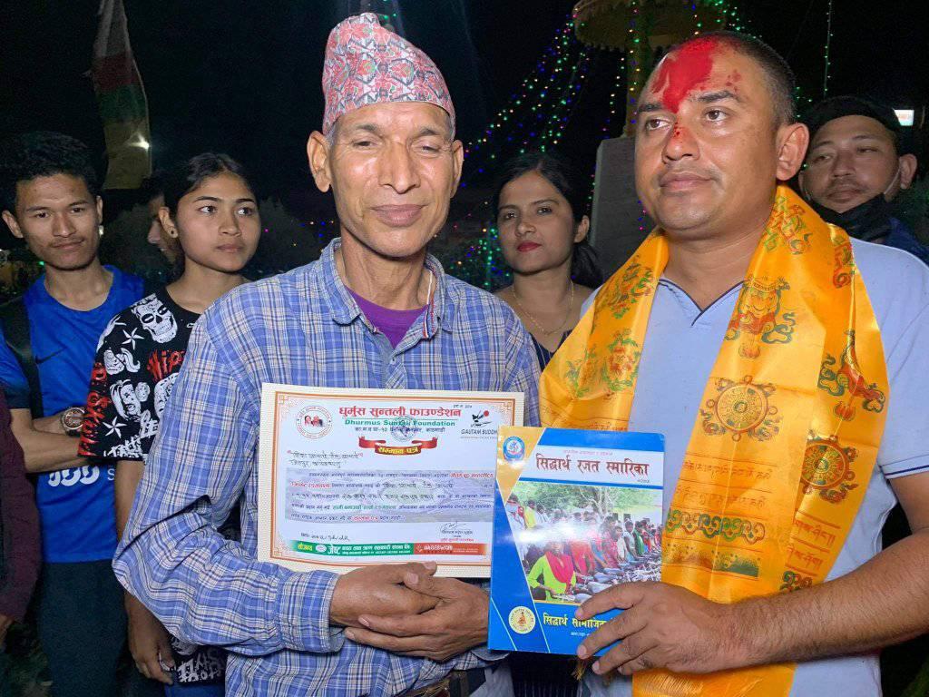 सहयोग गर्ने बेलामा कार्यक्रममै सन्नाटा छाएको थियो । धुर्मुसको अभियानको सुरुदेखिका प्रसंसक टंक आचार्यले सहयोग गर्न पाएकोमा भन्दा धुर्मुसलाई संगै भेट्न पाएको भन्दै मुर्छा पर्नुभयो । उहाँले भन्नुभयो‘तपाई महान हुनुहुन्छ । तपाई राष्ट्र निर्माता हो । नेताले देश खाइसके । अब धुर्मुसजस्ता ब्यक्तिबाट नेताले पनि कसरी विकास गर्नुपर्छ भन्ने कुरा सिक्नुहोस् ।’ यो सहयोग निकै सानो भएको बताउँदै ठुलो रुपमा नलिन उहाँले सबैलाई आग्रह गर्नुभयो ।