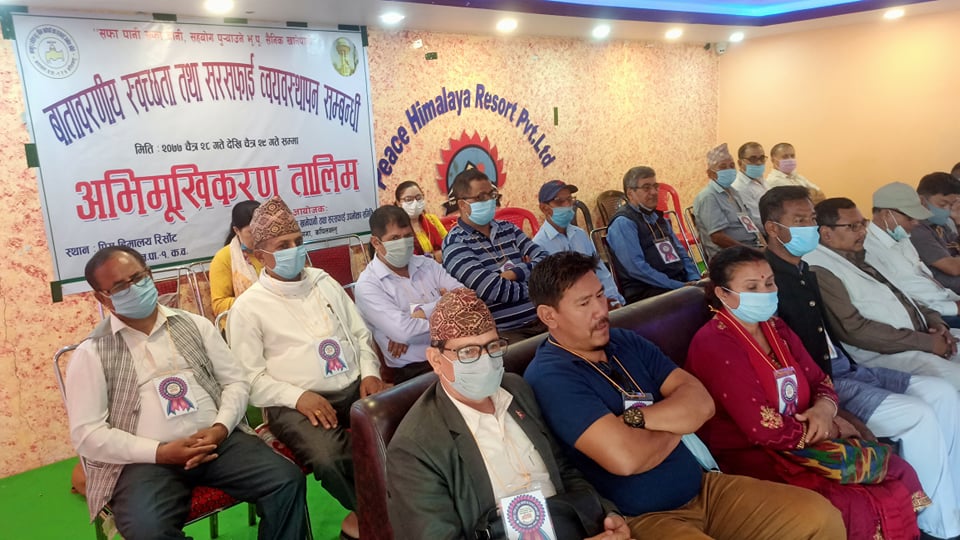 वातावरण स्व्च्छता तथा सरसफाइ व्यवस्थापन सम्बन्धी २ दिने अभिमुखिकरण तालिम कपिलवस्तुको बाणगंगामा सुरु भएको छ । “सफा पानी सफा बानी सहयोग पुर्याउने भु. पु सैनिक खानेपानी” भन्ने मुला नाराका साथ भुपु सैनिक खानेपानि उपभोक्ता समीतीको आयोजनामा शनिबारबाट तालिम सुरु भएको हो । वडा नम्बर ४ स्थित पिस हिमालय रिसोर्टमा सुरु भएको तालिममा भुपु सैनिक खानेपानिका अध्यक्ष राजेन्द्र विक्रम साहले अध्यक्षता लिँदै तालिमको उदेश्य बाणगंगालाई स्वच्छ र सरसफाइमा नमुना बनाउने रहेको बताउनु भयो । सबैले सहयोग गरेमा नगरको फोहर ब्यवस्थापनको जिम्मा आफूहरुले लिने पनि उहाँले बताउनु भयो ।