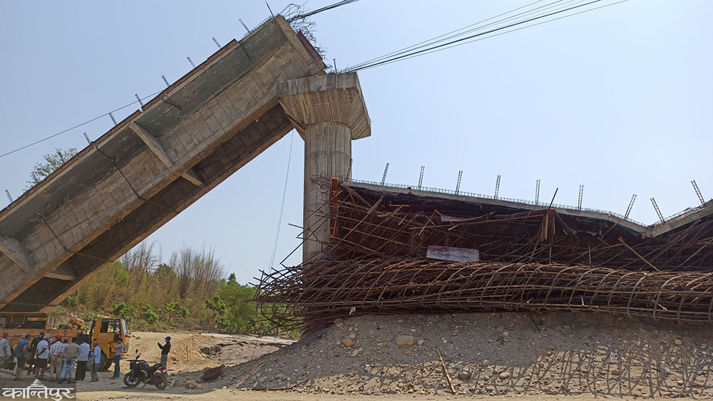 नदीमाथि मोटर गुड्ने पुल बनाउन ७१ साल कात्तिकमा सम्झौता भएको थियो । तर बनेर नसकिदै गएको चैत २४ गते राति अचानक त्यो पुल कामै नलाग्ने गरेर भत्केको थियो ।सम्झौता अनुसार ७४ सालको कात्तिकमै पुल बनाउने काम पुरा हुनुपर्दथ्यो । तर पटकपटक गरेर चार पटक म्याद थपे पनि बन्न बाँकी रहँदै पुल कामै नलाग्ने गरेर भत्केको थियो । पुल दुई सय मिटर लम्बाइको छ । कंक्रिटका ४०र४० मिटरका तीनवटा र स्टीलको एउटा ८० मिटरको स्पान पुलमा रहन्छ । चैतमा कंक्रिटको स्पान भत्केको थियो । यो पटक स्टीलको स्पान पनि भत्केको हो ।