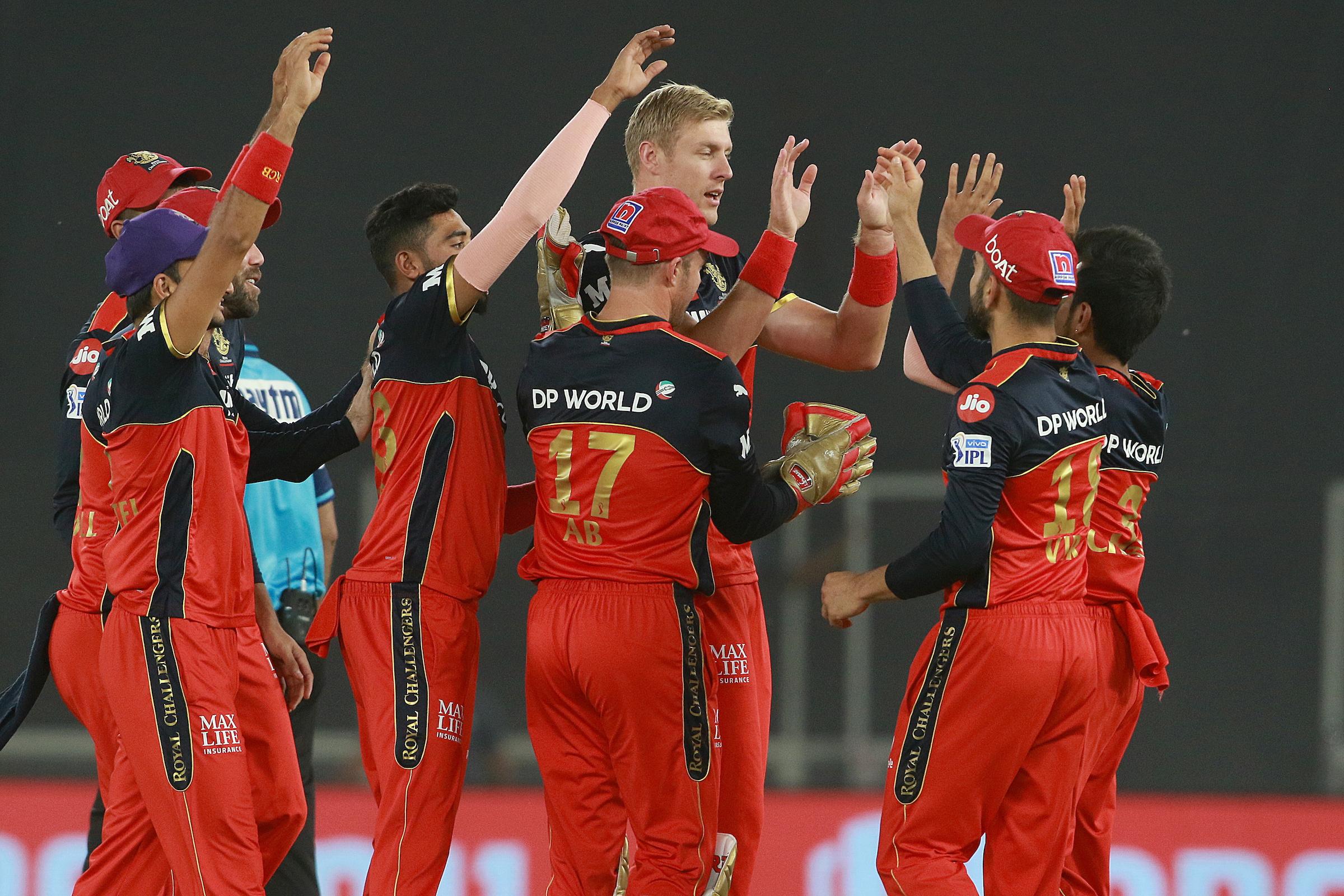 बैंगलोरका हर्सल पटेलले २ विकेट लिए । मोहमद सिराज र केली जेमिसनले १÷१ विकेट लिए । यस अघि टस हारेर पहिले ब्याटिङ गरेको बैंगलोरले २० ओभरमा ५ विकेट गुमाएर १ सय ७१ रन बनाएको थियो ।