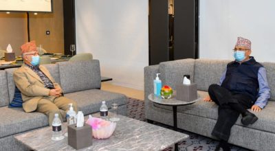 काठमाण्डौ । नेकपा एमालेका अध्यक्ष केपी शर्मा ओली र नेता माधवकुमार नेपालबीचको भेटवार्ता सकिएको छ