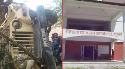 गुल्मी । सवारी दुर्घटनामा प्रशासकीय अधिकृतसहित चार जनाको मृत्यु भएपछि जिल्ला प्रशासन कार्यालय, गुल्मी शोकमा