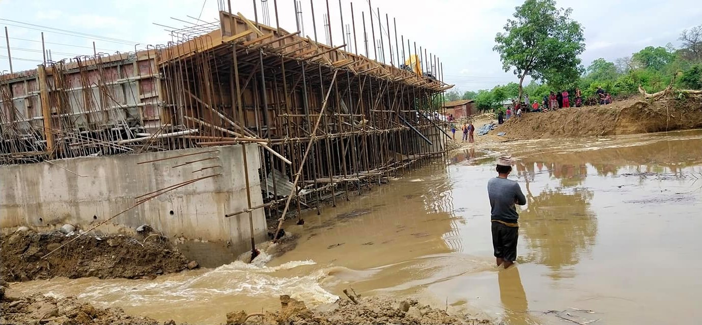 गएको अशोज यता बर्षात नभैरहेको अवस्थामा राति र विहान यस क्षेत्रमा ठूलो पानी परेको छ । बुधबार पुल ढलान गर्ने तयारी भैरहेको बेला बर्षात भएपनि खोलामा बाढी आएको थियो । खोलामा आएको बाढीले पुललाई झण्डै बगाएको स्थानीयले बताएका छन् । अझै केहीबेर बर्षात भएको भए पुल बगाउने स्थानीयले बताए ।