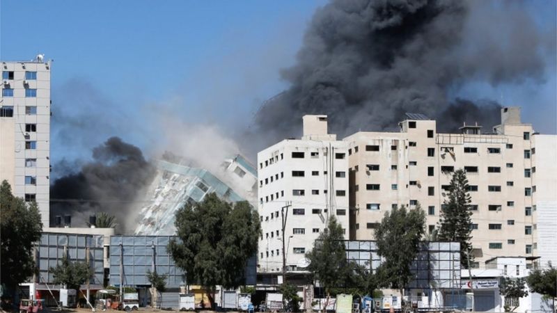 इजरायलले गरेको मिसाइल हमलामा परि गाजामा रहेको एक भवन ध्वस्त भएको छ । यस आक्रमणमा समाचार एजेन्सी एसोसिएटेड प्रेस तथा कतारी समाचार संस्था अल जजिराको कार्यालय पनि ध्वस्त भएको समाचार एजेन्सी रोयटर्सले जनाइएको छ ।