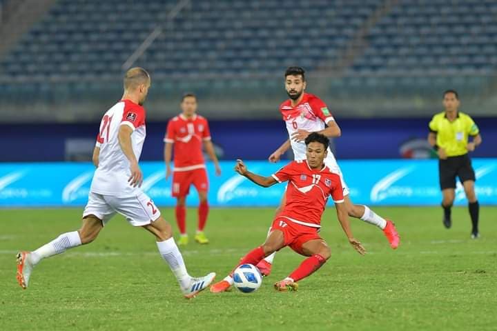 सन् २०२२ को विश्वकप छनोट र एसिया कप २०२३ को अन्तर्गत दोस्रो चरणको छनोट खेलमा नेपाल जोर्डनसँग पराजित भएको छ । सोमबार भएको खेलमा नेपाल जोर्डनसँग ३–० गोल अन्तरले पराजित भएको हो । जावेर अल आहमद स्टेडियममा भएको खेलमा जोर्डनलाई जित दिलाउन बाहा फेजलले दुई गोल गरे । त्यस्तै एजान अल अरबले एक गोल गरे ।
