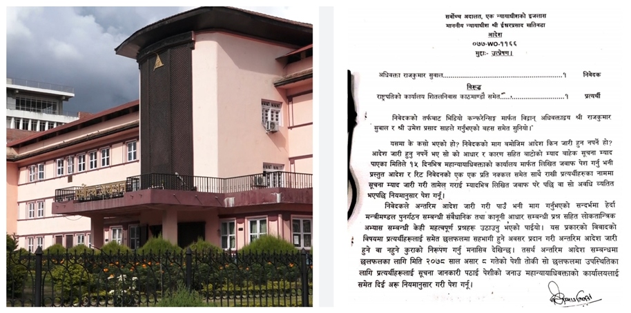 सर्वोच्च अदालतले मन्त्रिपरिषद् विस्तारको निर्णयबारे सरकारसँग जवाफ माग गरेको छ । कामचलाउ सरकारले मन्त्रिपरिषद् विस्तार गरेको भन्दै त्यसको विरुद्ध सर्वोच्च अदालतमा परेका रिटमाथि सुनुवाइ गर्दै न्यायाधीश ईश्वरप्रसाद खतिवडाको इजलासले सरकारलाई १५ दिनभित्र जवाफ पेस गर्न आदेश दिएको हो ।
