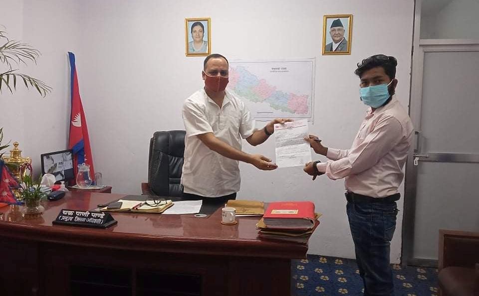 संगठनले बुधबार जिल्ला प्रशासन कार्यालय कपिलवस्तु र जिल्ला शिक्षा विकास तथा समन्वय इकाइ प्रमुखको कार्यलयमा बिभिन्न ९ बुँदे मागसहितको ज्ञापन पत्र पेश गरेको हो । कोरोनाको यस विषम परिस्थितिमा जिल्लामा प्रभावकारी ढंगले काम हुन नसकेको भन्दै ज्ञापन पत्र पेश गर्नु परेको संगठनका अध्यक्ष विज्ञान क्षेत्रीले बताउनु भयो ।