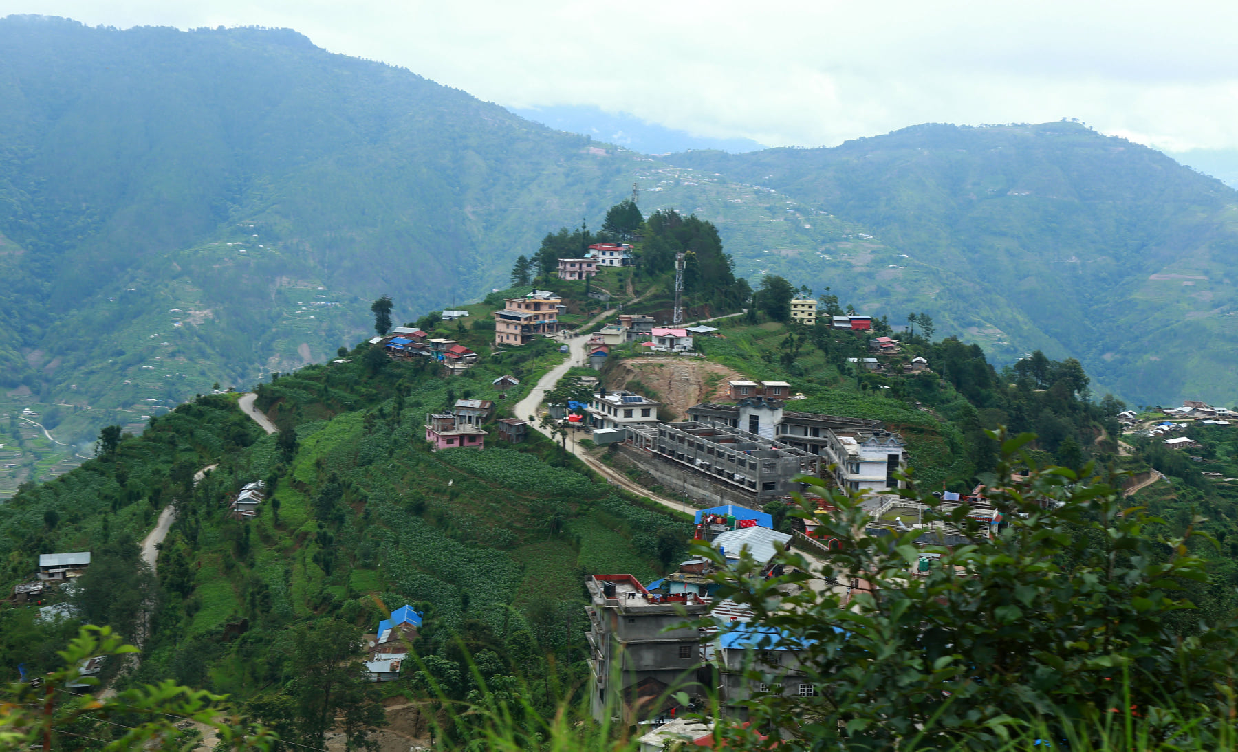 सिन्धुपाल्चोकको भोटेचौर बजार आसपासको क्षेत्र। काठमाडौँबाट मेलम्ची हुँदै हेलम्बु सवारी साधन आवतजावत हुने बाटो बर्खा र कोराना कहरका कारण अहिले सुनसान देखिएको छ।